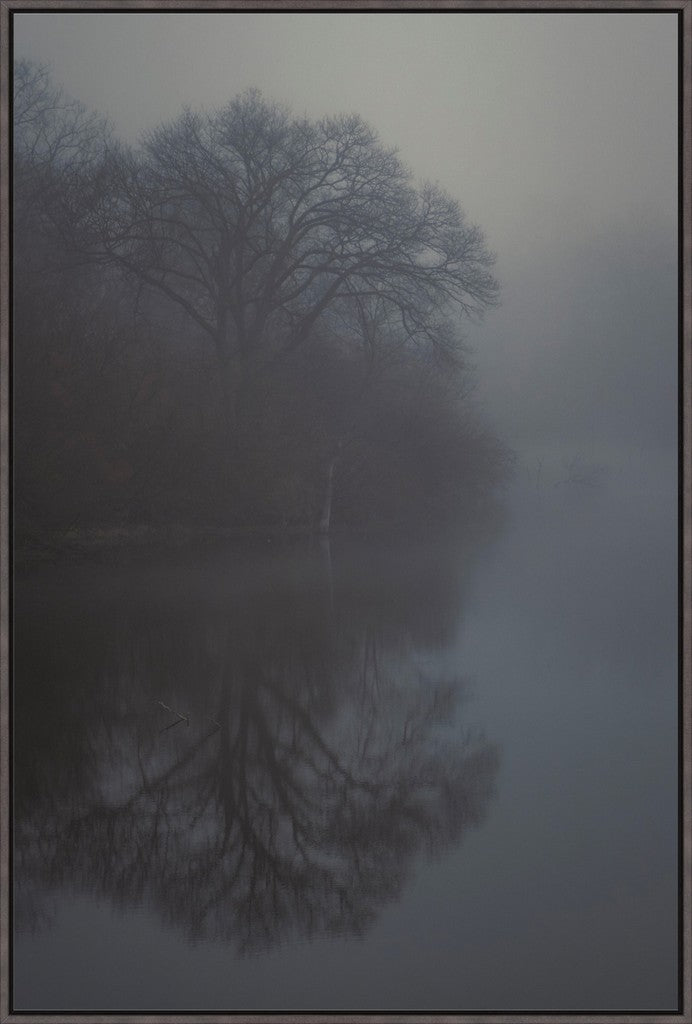 Experience the winter beauty of fog-covered Charity Lake in Northwest Missouri. The stunning contrast of the mist against the golden leaves of the hardwood trees makes for a mesmerizing sight.