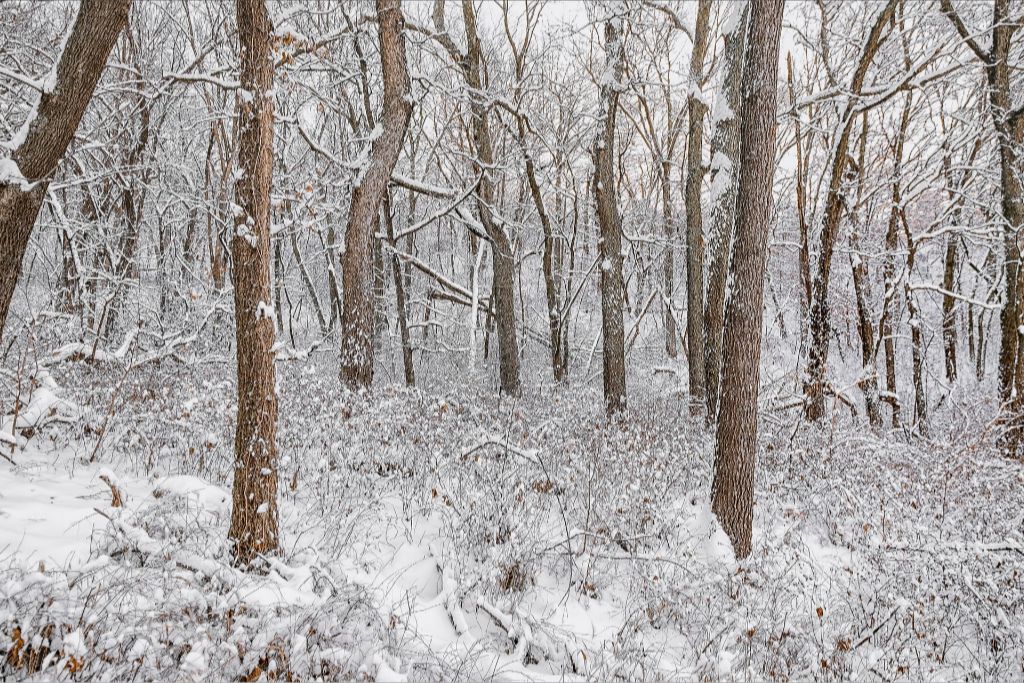 Immerse yourself in the peaceful stillness of a snow covered forest in northwest Missouri in this winter photograph.